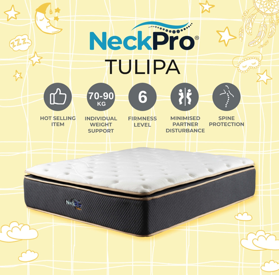 Cannot tahan your partner's active sleeping pattern? Go for NeckPro Tulipa! Tulipa is equipped with a pocketed coil for great body c...