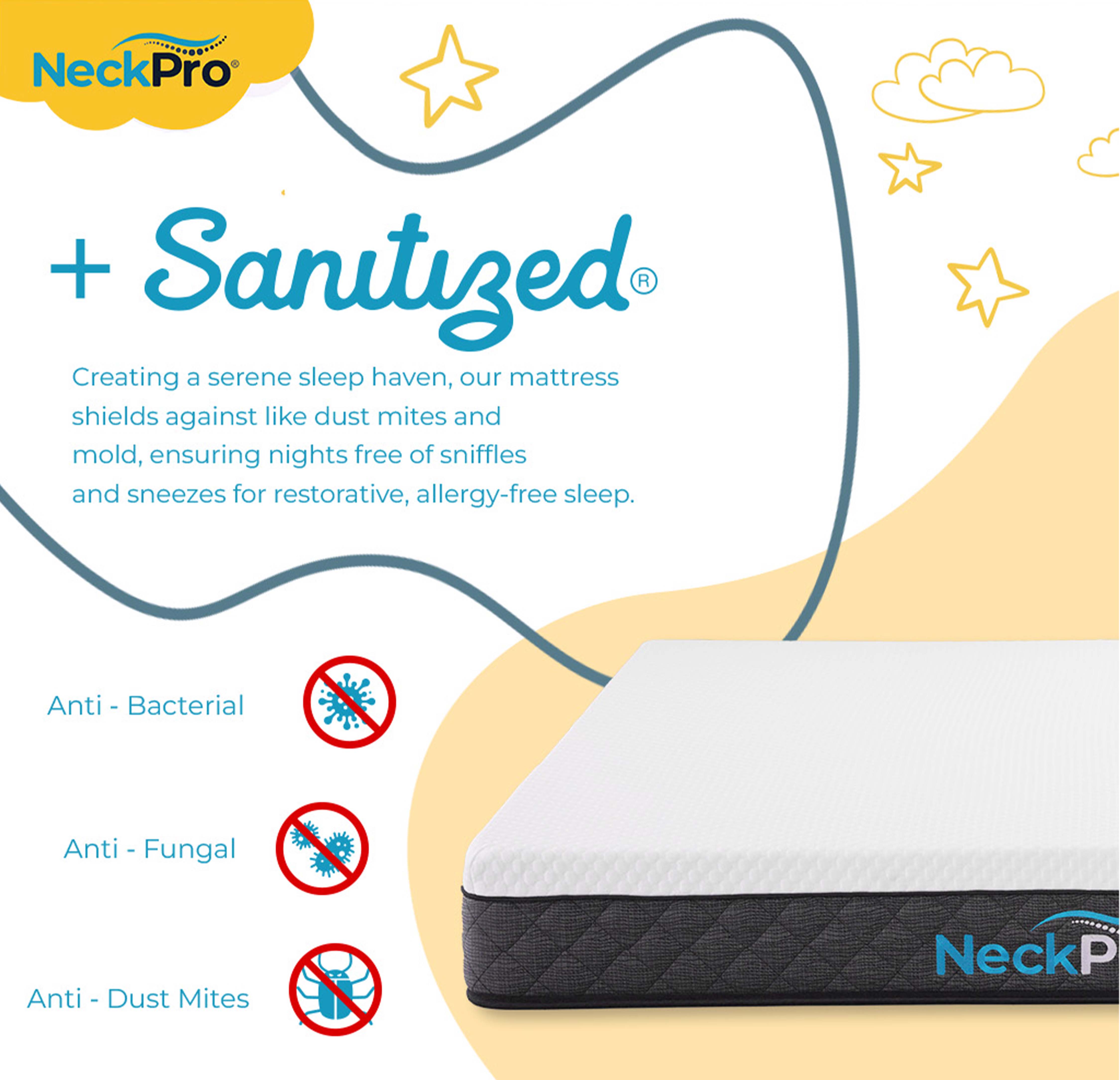 • Sanitized® Protection – anti-dust mite, anti-bacterial, and anti-fungal treatment ensures a cleaner, healthier sleep environment.