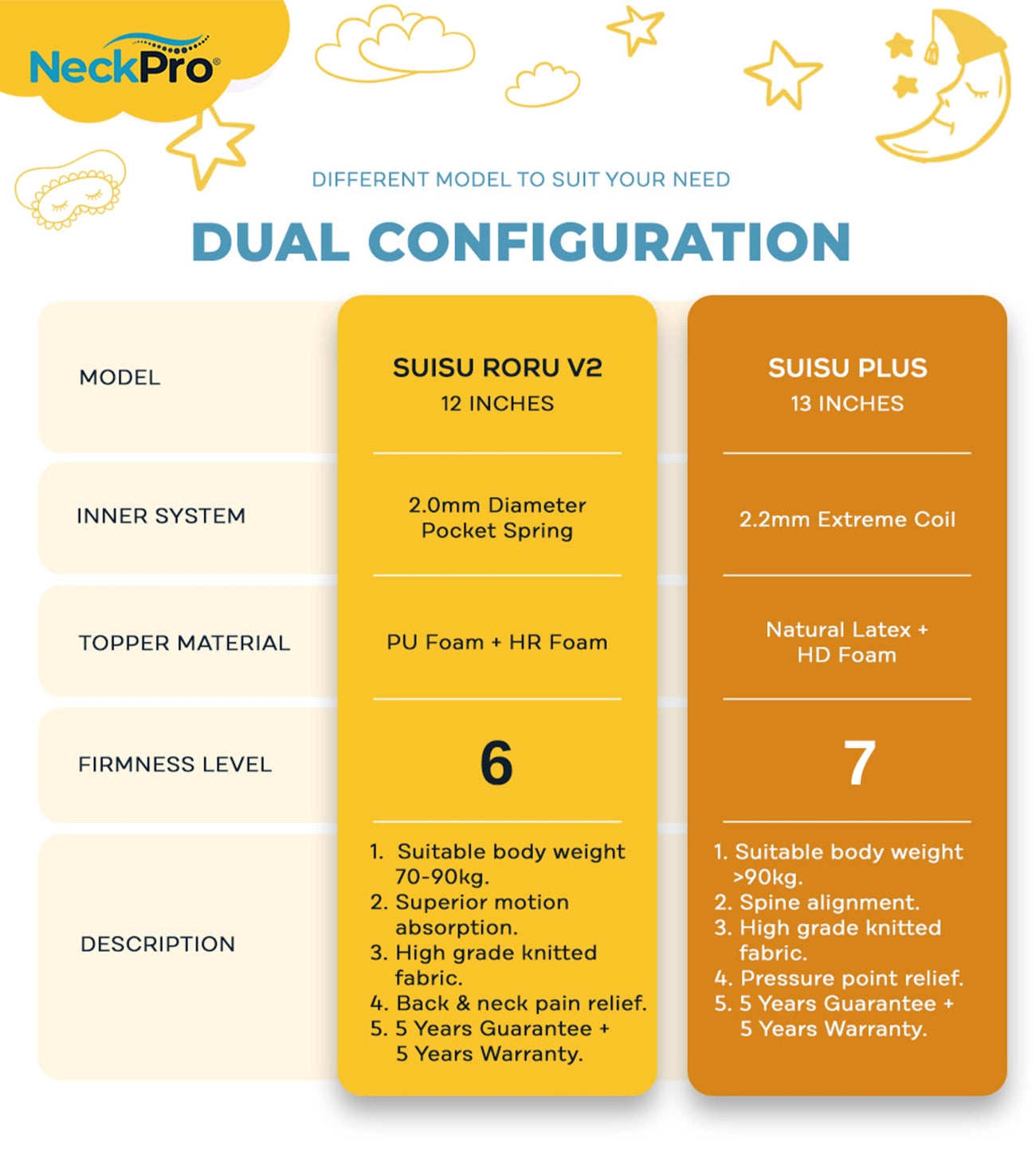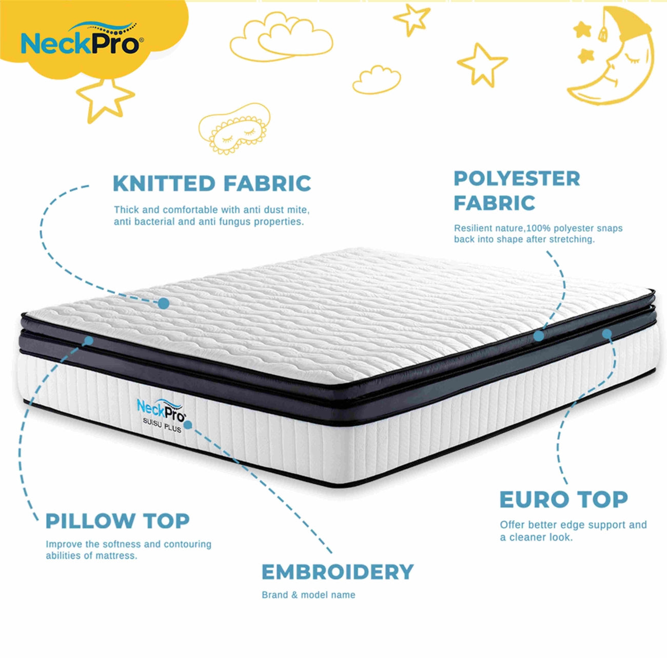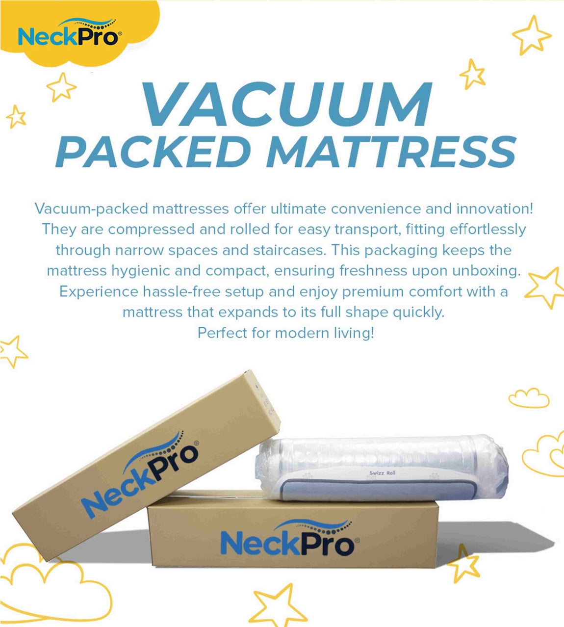 If you're suffering from severe back pain, then this mattress definitely is your best choice. NeckPro Suisu Plus is our new launching product for the Compressed and Rolled Series, it is complete with a 2.2mm diameter pocket spring system and natural latex which provides excellent body support. This is also a super convenient mattress where it's vacuum-packed into a neat, compact parcel, which makes it easy for you to transport it anywhere.