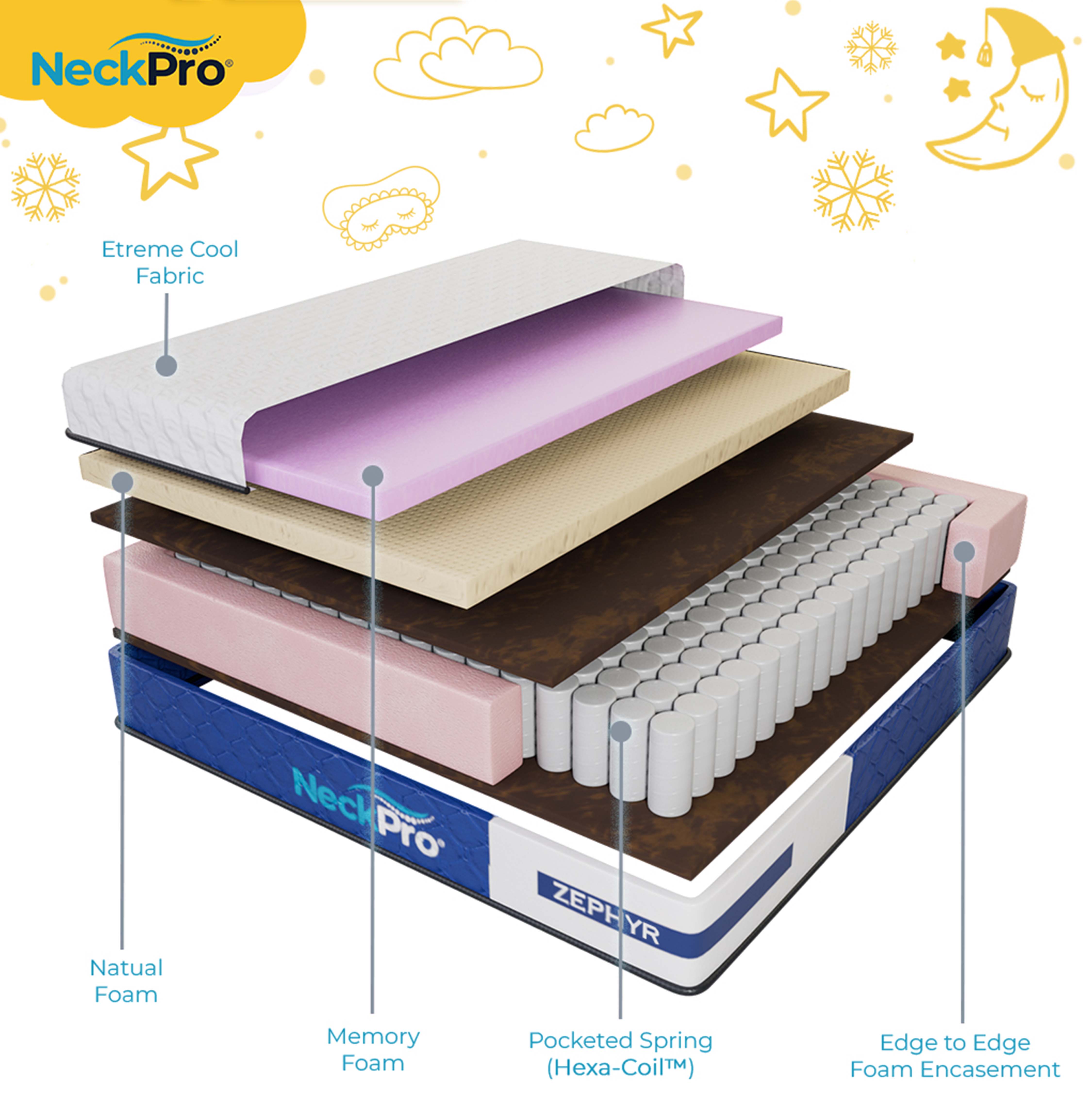 Hexa-Coil™ Pocketed Spring System – engineered to support individuals weighing over 110kg, adapting to body contours while minimizing motion transfer.