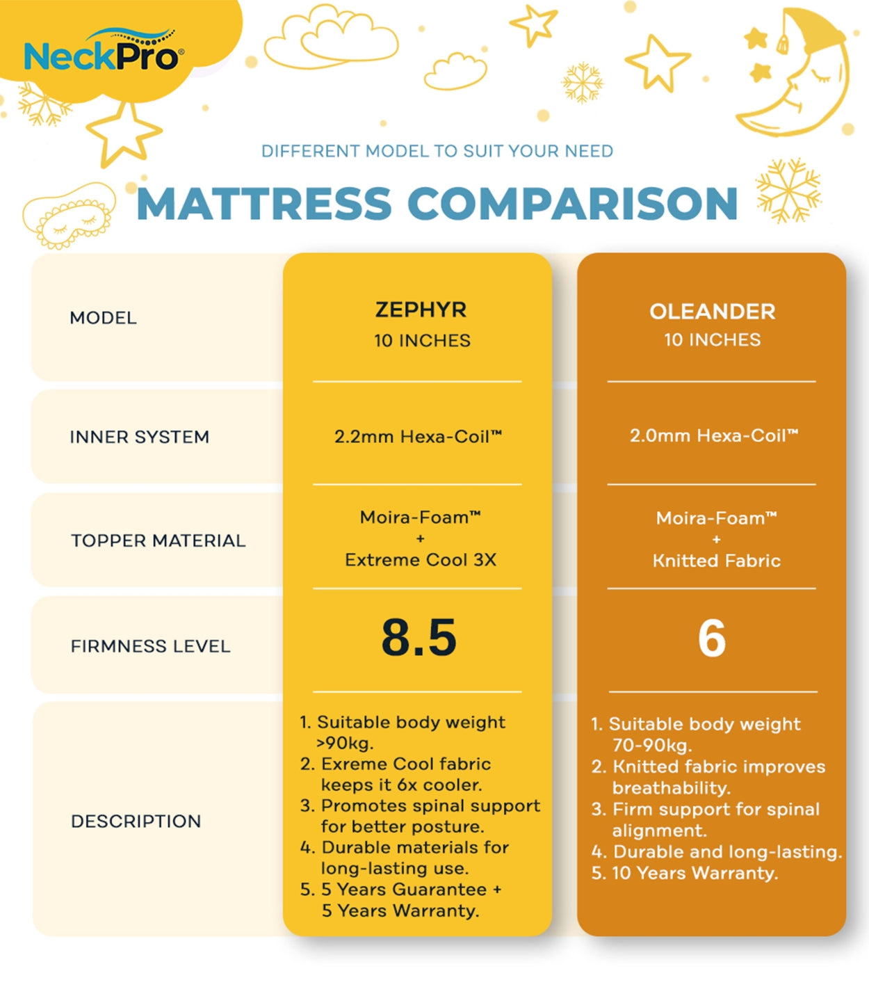 The NeckPro SUMO Series is trusted for its advanced support, cooling innovation, and chiropractor-approved durability. Designed as a lighter and more practical alternative to traditional coconut fibre mattresses, the Zephyr delivers similar firmness at just half the weight — making it easier to maintain while offering superior comfort and resilience.
